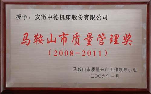 我公司獲“第二屆馬鞍山市質量管理獎”